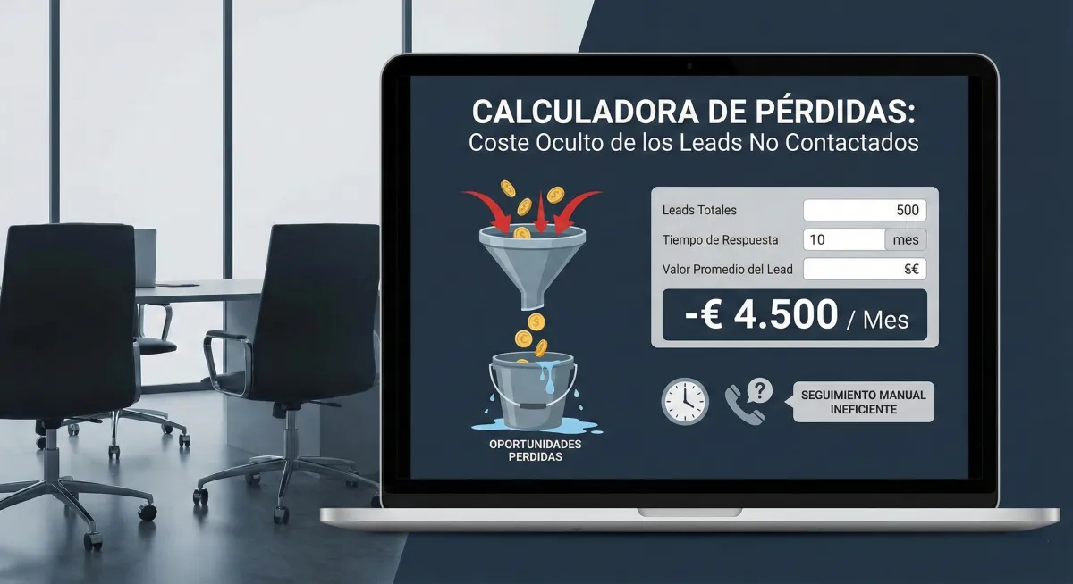 - es una herramienta que revela, en segundos, cuántos euros pierdes cada mes por contactar tarde a tus leads o no hacer suficiente seguimiento. Te muestra el coste oculto de los procesos manuales y donde se están escapando las oportunidades