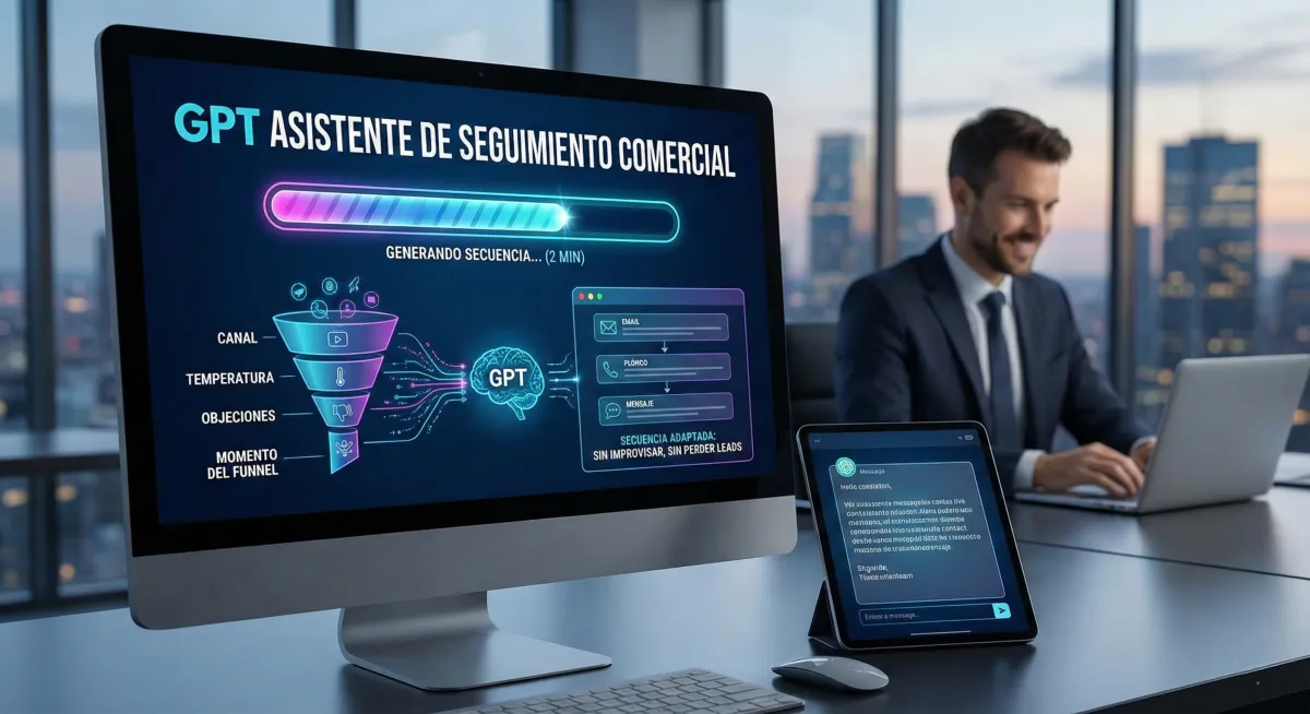 Agente GPT que actua como asistente de seguimientos comerciales y libera tiempo a tus SDRs de tareas de poco valor para centrarse en tareas estratégicas. Se adaptada al contexto real de cada lead (canal, temperatura, objeciones y momento del funnel).